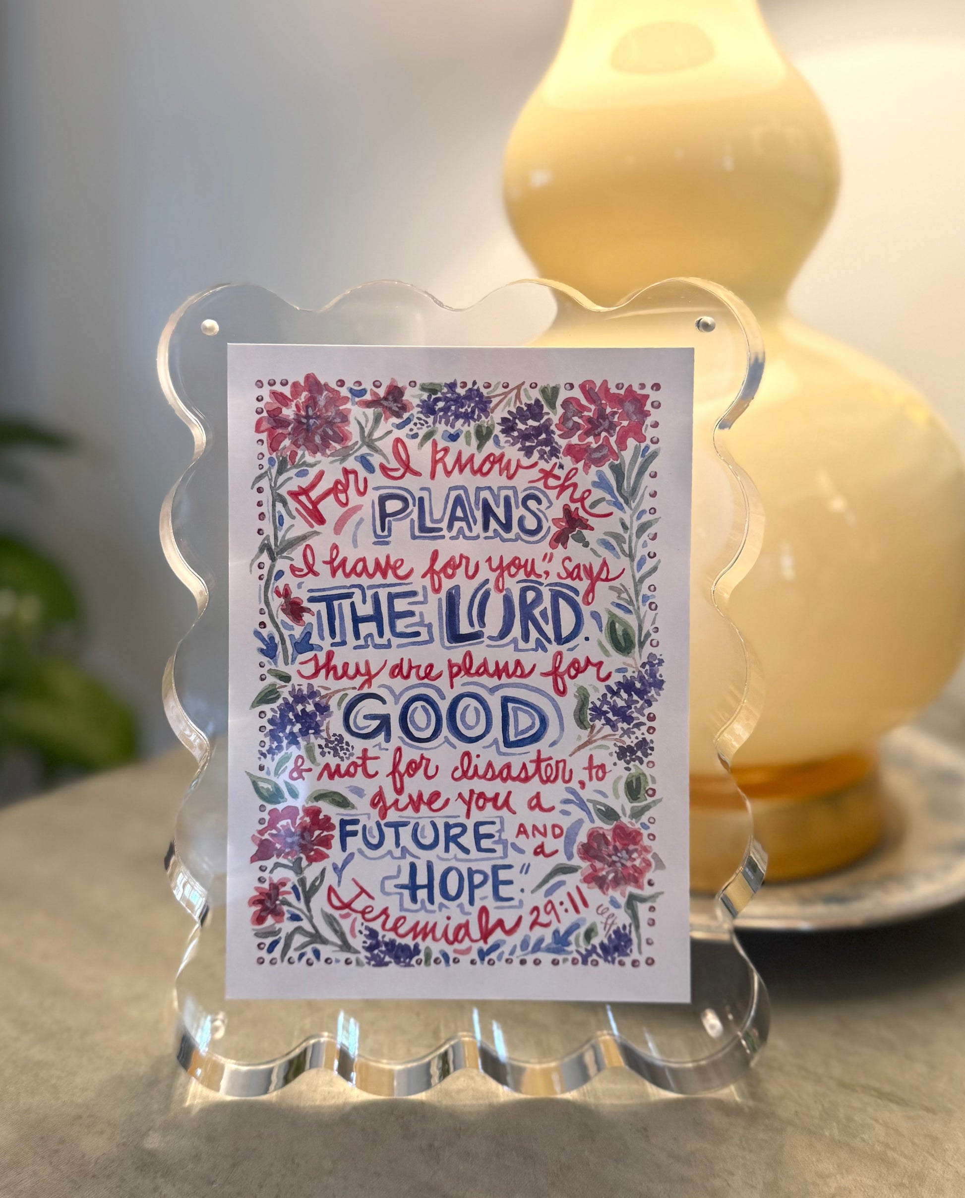 *Styling Suggestion: These Scripture prints look great a number of ways, but one of my favorite ways to display them is in magnetized acrylic table top frames. There are a several styles of these available on Amazon and at art supply stores like Michael's. The scalloped one pictured here is from Michael's (click link to shop this frame).