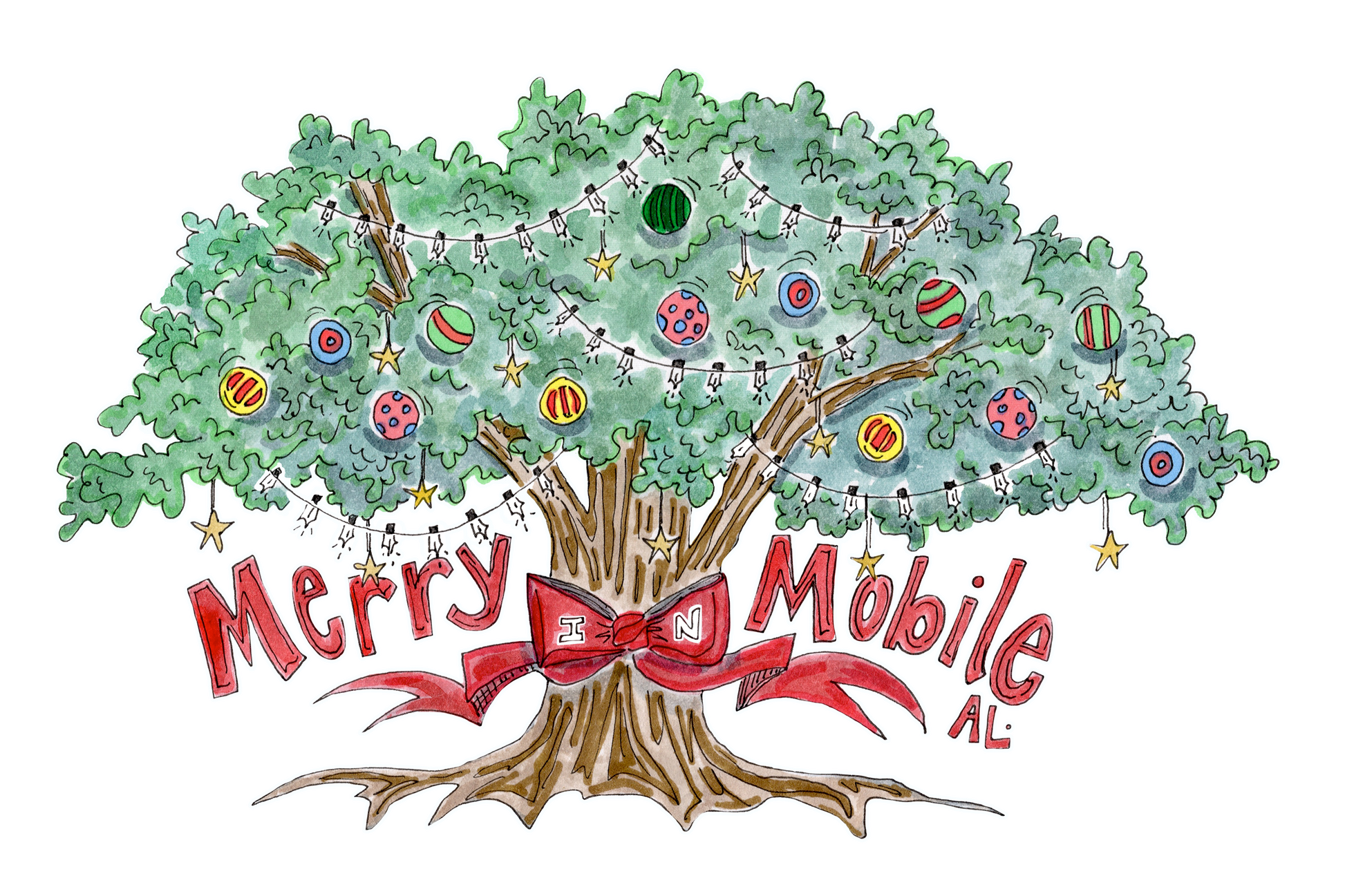 Mobile, Alabama is famous for a few things, one of them being our stately live oaks dripping with Spanish moss. At Christmastime, Mobilians make merry by adding lights, other baubles, and sometimes giant bows to their own live oaks. I'd argue they're prettier than those ol' traditional fir trees.