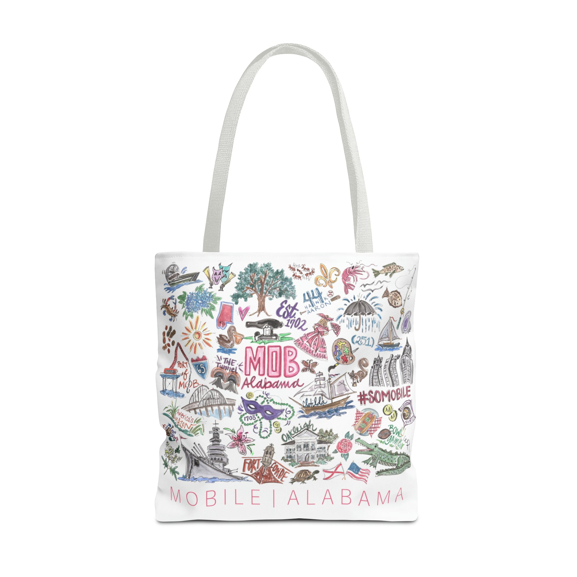 These colorful tote bags (available in multiple sizes) feature the Mobile, AL Sketches motif and are the perfect carryall for Mobilians on the go.